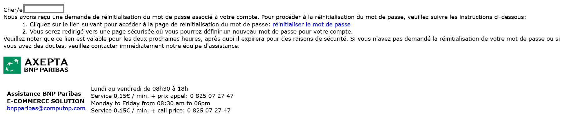 • Ce mail comprendra un avis les informant de contacter leur administrateur ou le service d'assistance s'ils n'ont pas demandé la réinitialisation