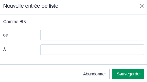 Vous avez également la possibilité d’ouvrir la vue détaillée de chaque entrée de liste autorisée, ou de supprimer une plage BIN dans cette vue détaillée.
