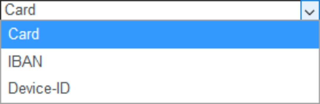 3. Enter the card number, IBAN or device ID in the "Listed value" input field.