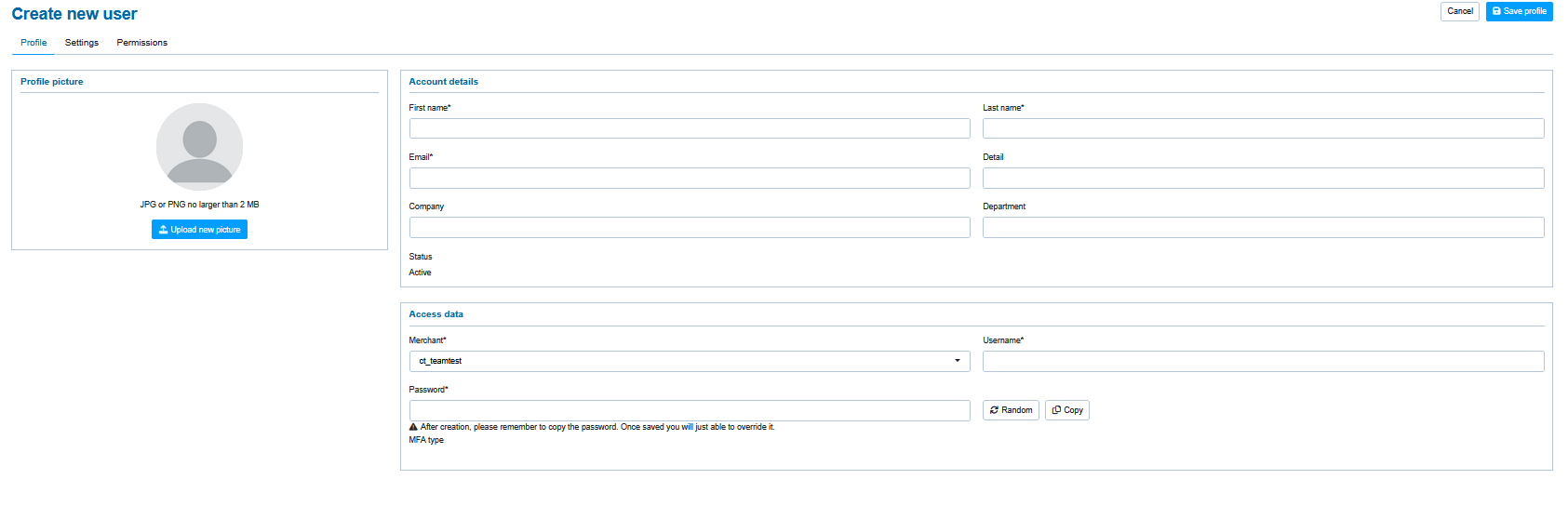 The access data Merchant and username for the user can only be changed by Computop Support for security reasons.