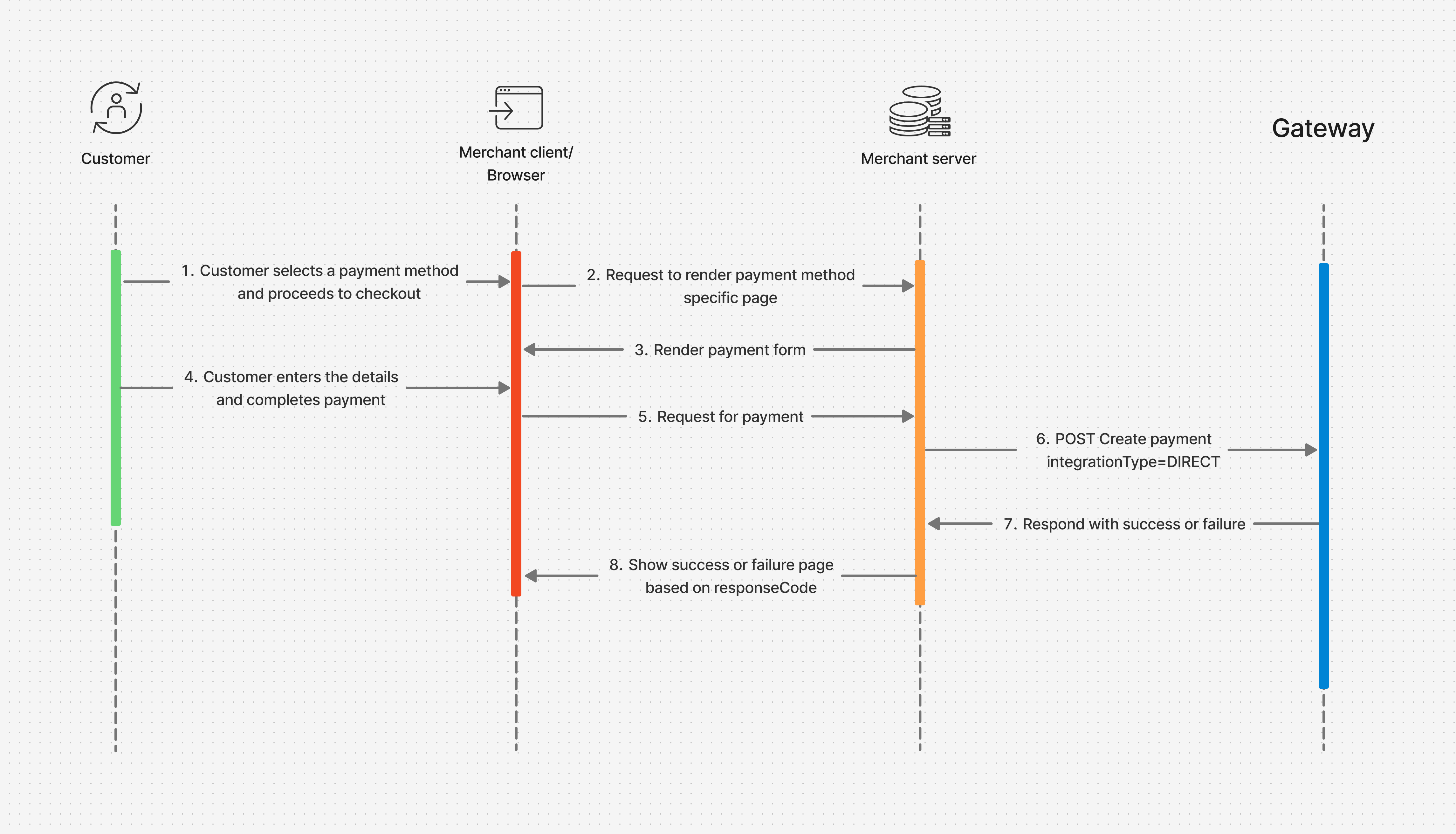 L'intégration directe vous permet de traiter les paiements entièrement via des appels API serveur-à-serveur, tout en créant votre propre expérience de paiement. Cette approche est idéale pour les entreprises nécessitant un contrôle total sur leur interface de paiement tout en étant conforme à la réglementation PCI-DSS.