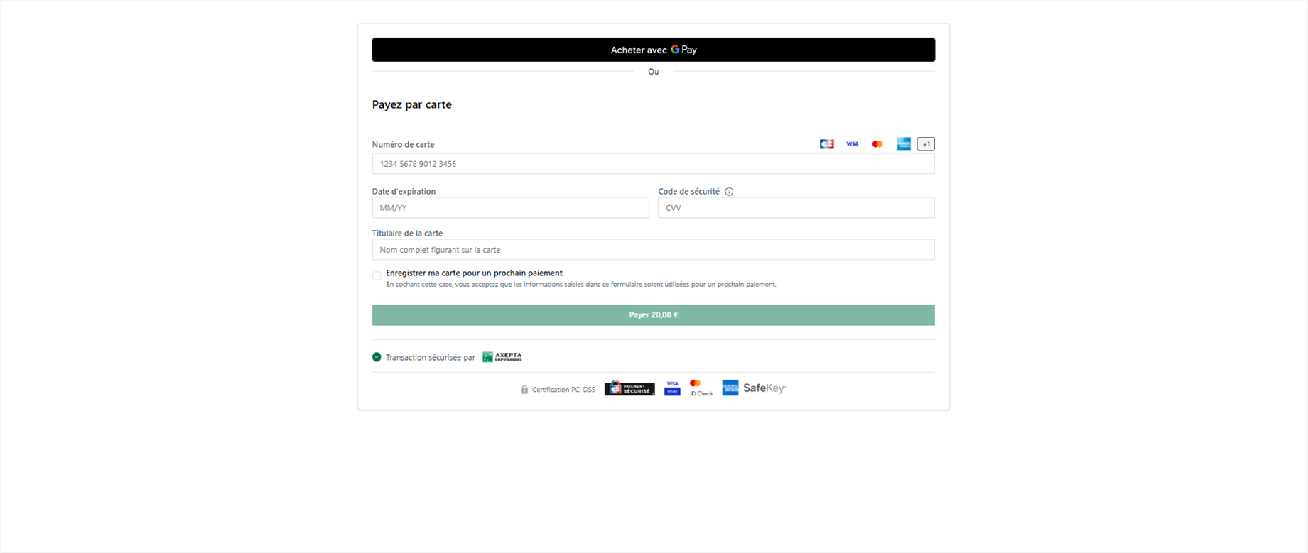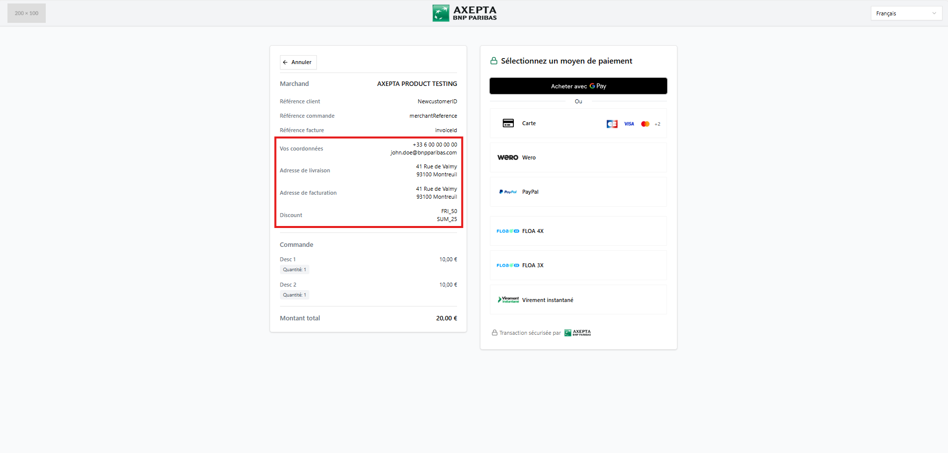 Il existe 2 types de pages de paiement AXEPTA qui peuvent être personnalisées à l'aide des customfields.